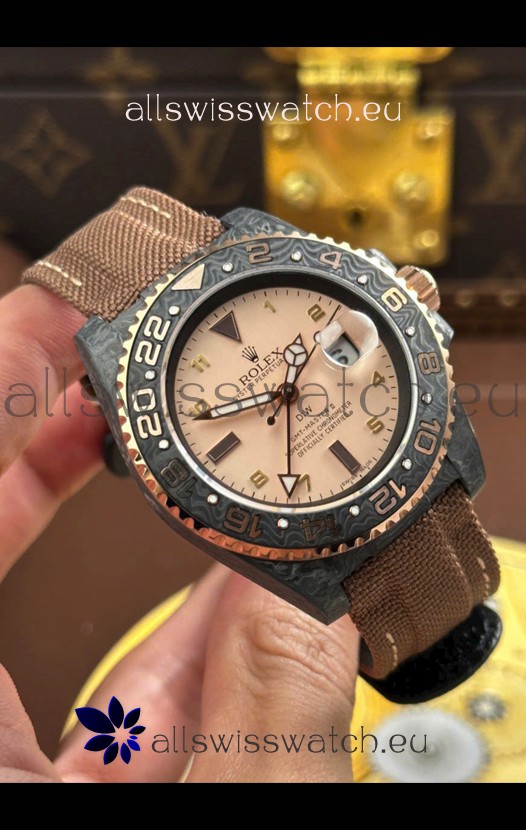 Rolex GMT Masters DiW Black Carbon Casing Swiss Replica Watch Beige Gray Dial
