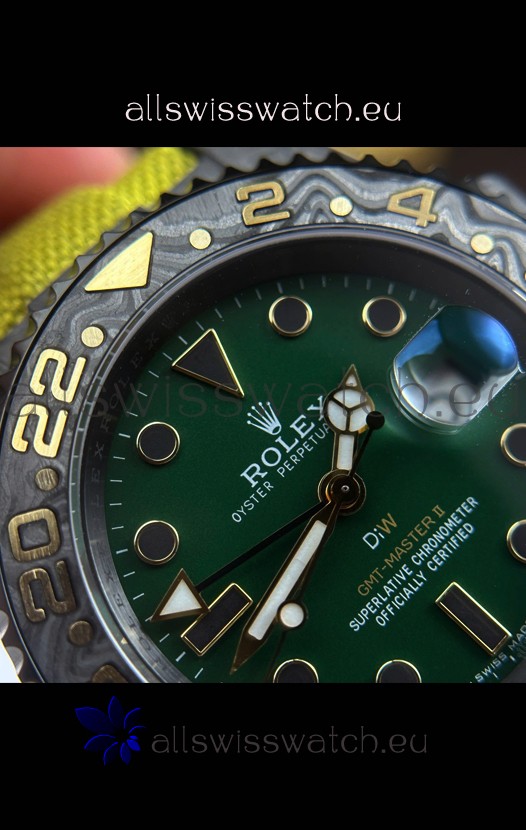 Rolex GMT Masters II DiW Carbon Casing Swiss Replica Watch Green Dial