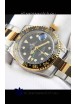 Rolex GMT Masters II 2 Tone Rose Gold Plating Japanese Replica Watch Black Dial