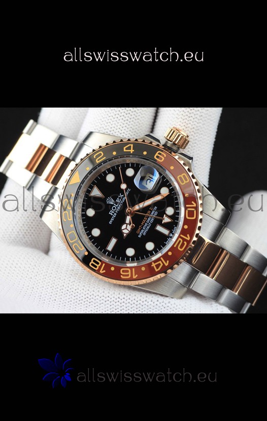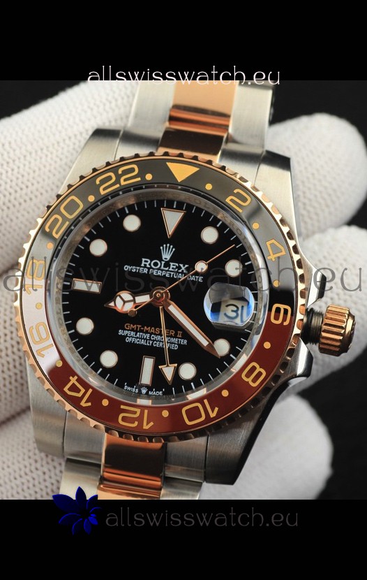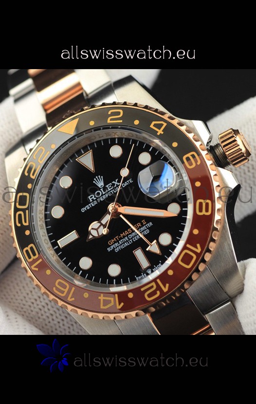 You're reviewing: Rolex GMT Masters II 2 Tone Rose Gold Plating Japanese Replica Watch Black Dial