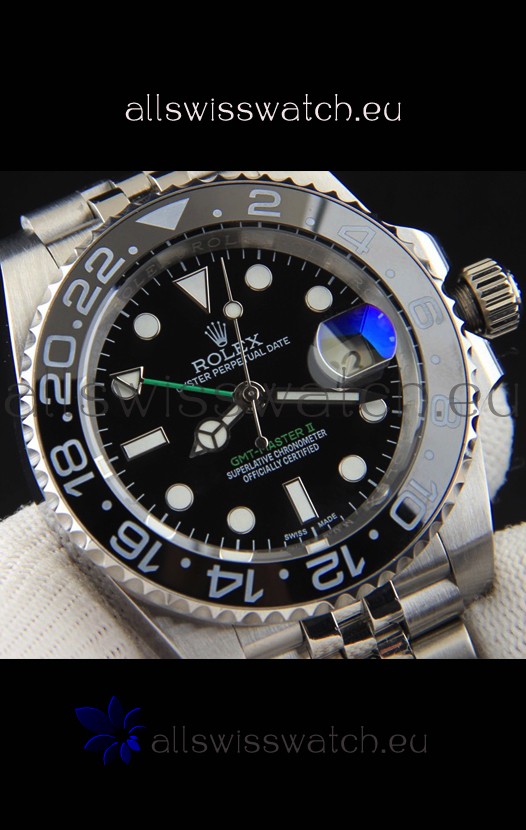 You're reviewing: Rolex GMT Masters II Japanese Movement Replica Watch Steel Case Black Dial