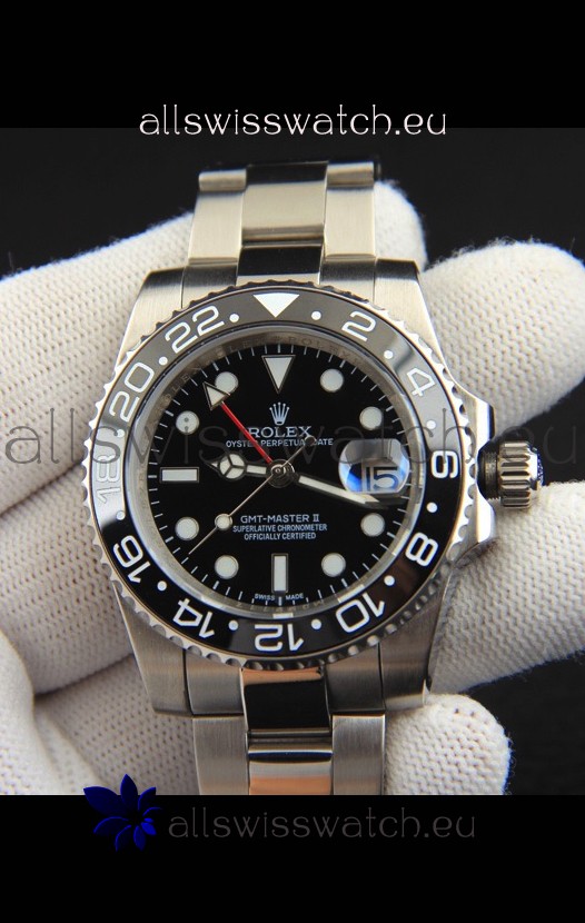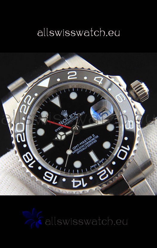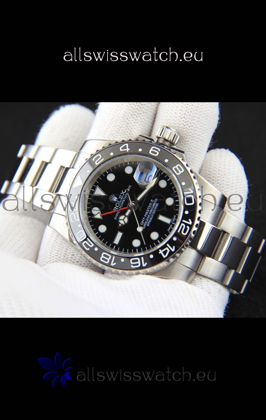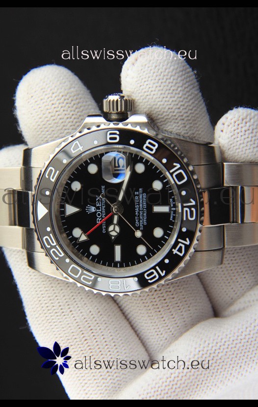 Rolex GMT Masters II Japanese Movement Replica Watch Steel Case Black Dial