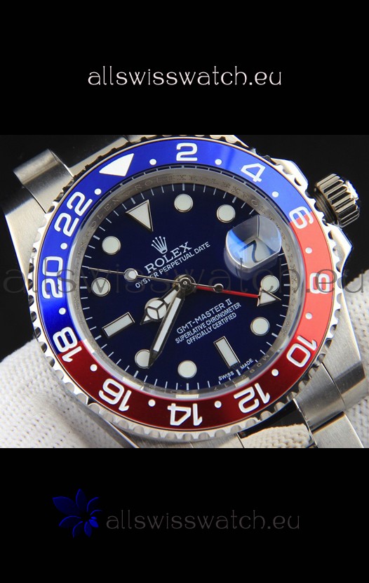Rolex GMT Masters II Japanese Movement Replica Watch Steel Case Black Dial