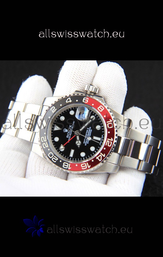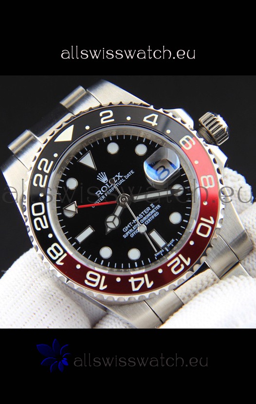 Rolex GMT Masters II Japanese Movement Replica Watch Steel Case Black Dial