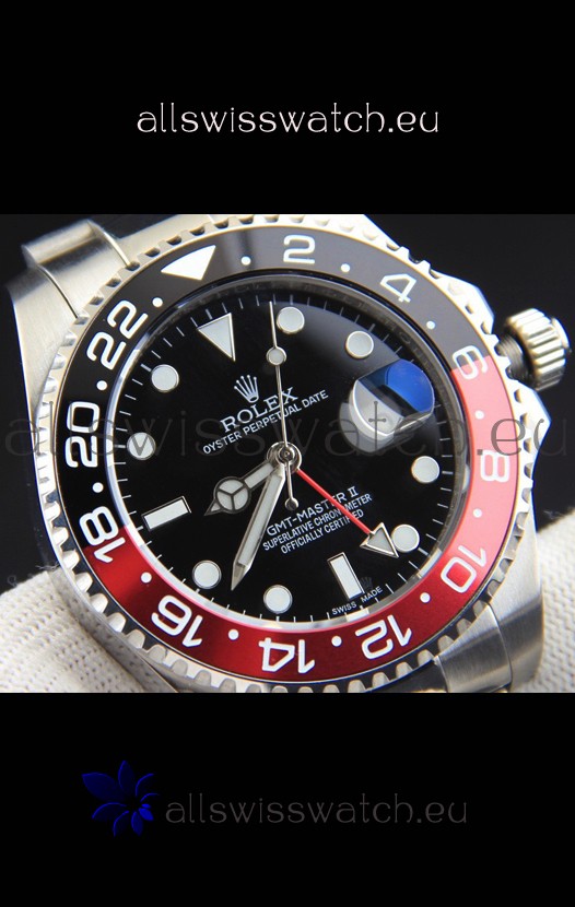 You're reviewing: Rolex GMT Masters II Japanese Movement Replica Watch Steel Case Black Dial