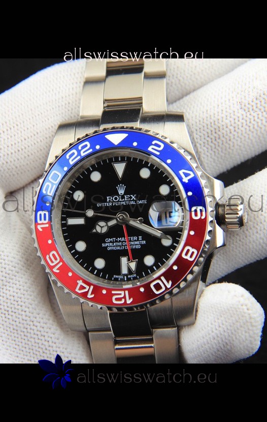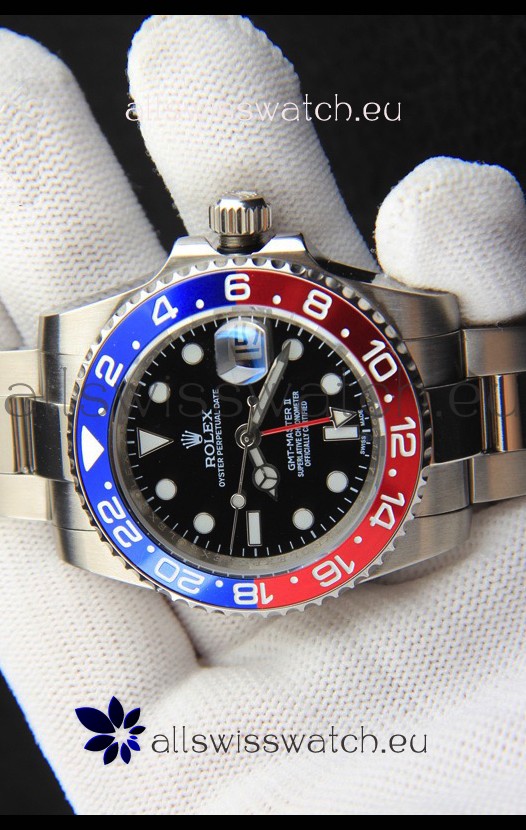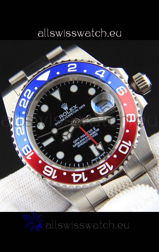 Rolex GMT Masters II Japanese Movement Replica Watch Steel Case Black Dial