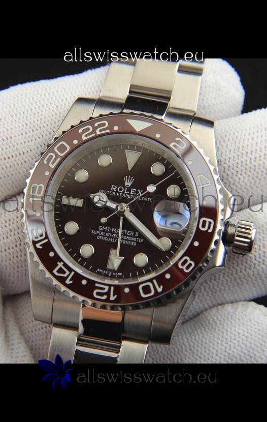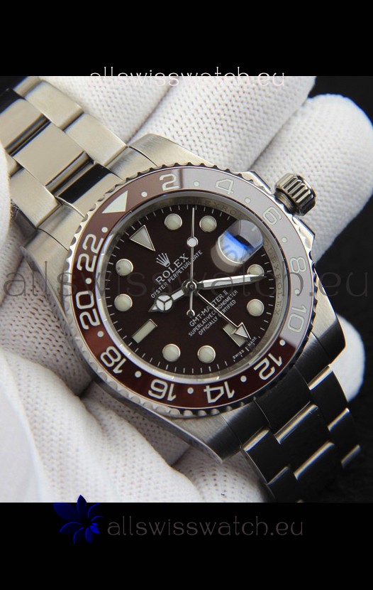 You're reviewing: Rolex GMT Masters II Japanese Movement Replica Watch Steel Case Black Dial