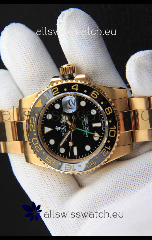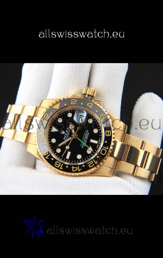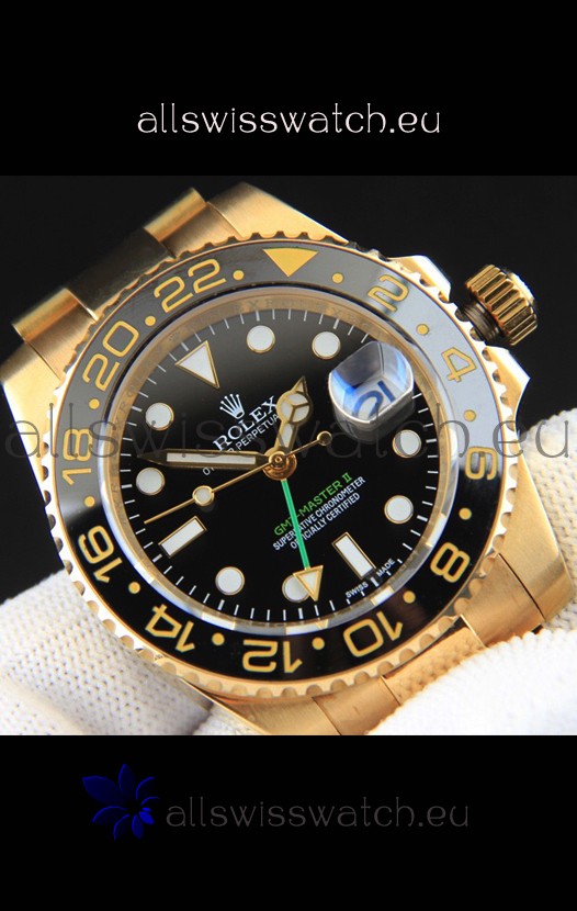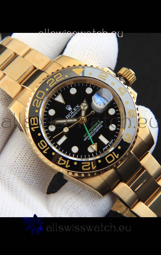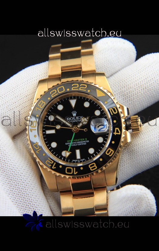 You're reviewing: Rolex GMT Masters II Rose Gold Plating Japanese Replica Watch Black Dial