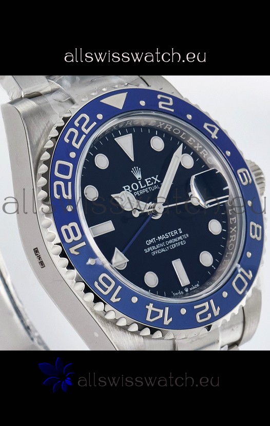 Rolex GMT Masters II Super Clone 126716 "Blaken" 904L Steel Blue Dial Watch