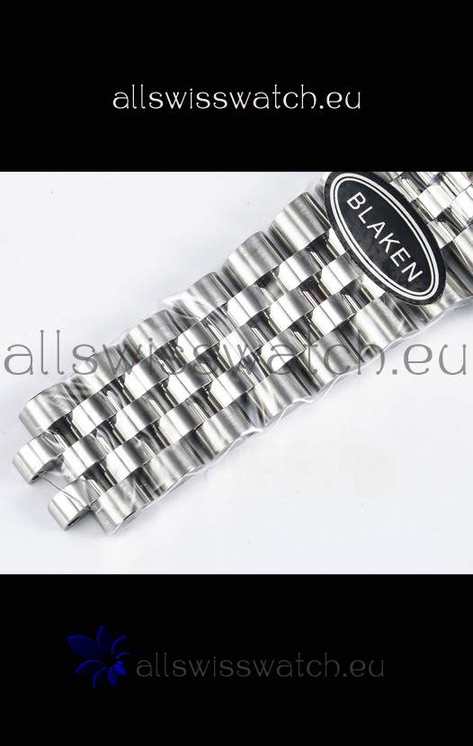904L Stainless Steel Case as per the Orginal with Metallic Blue Ceramic Inserts.