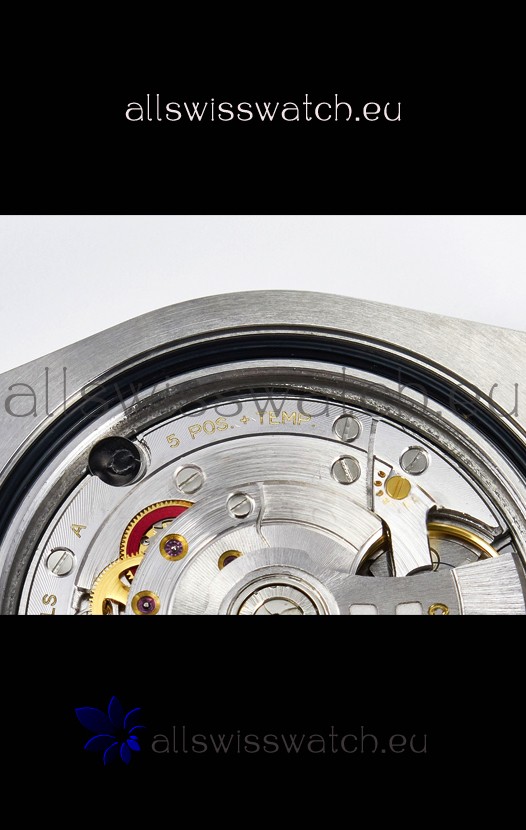 Genuine Swiss 3285 Movement; 28,800 VPH, nickel plated with very smooth sweep in seconds hands movement.