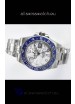 904L Stainless Steel Case as per the Orginal with Metallic Blue Ceramic Inserts.