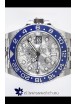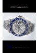 904L Stainless Steel Case as per the Orginal with Metallic Blue Ceramic Inserts.