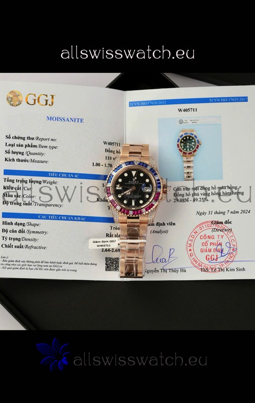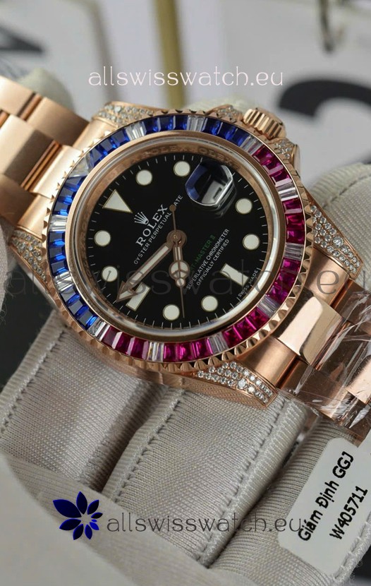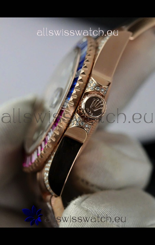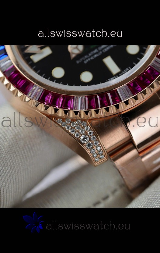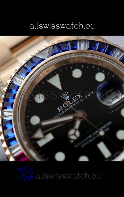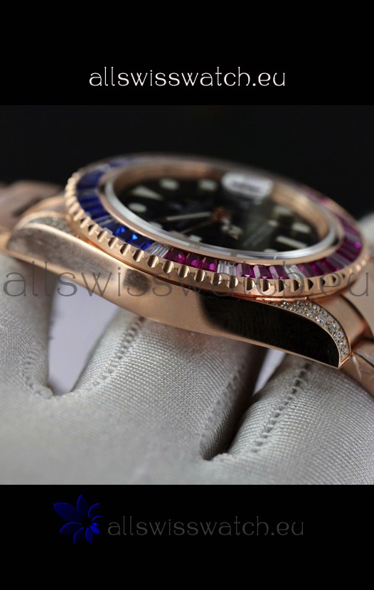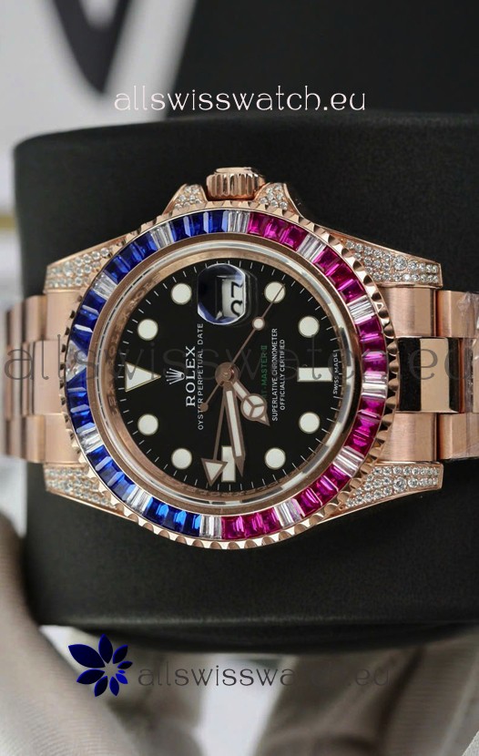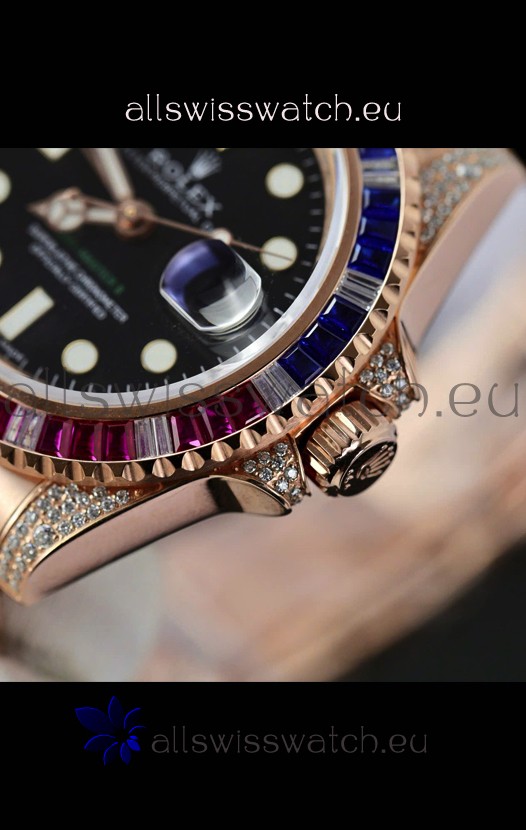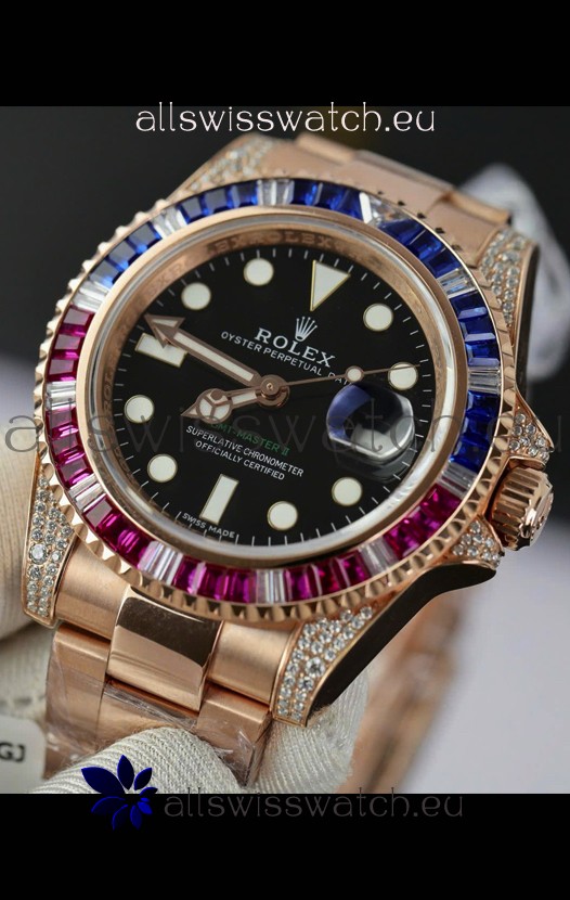 Rolex GMT Masters Super Clone Diamonds Swiss watch with Rose Gold 904L Case - 1:1 Mirror Quality