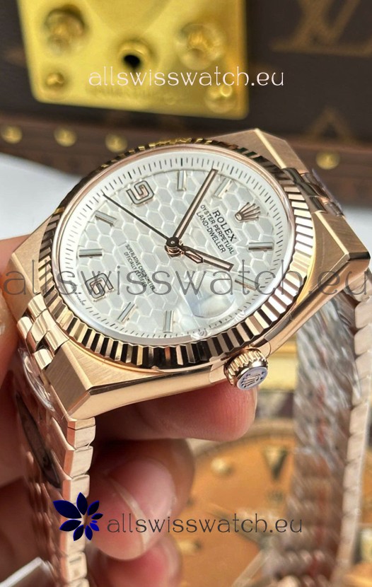 You're reviewing: Rolex Land-Dweller 127235 Steel Honeycomb Rose Gold 36MM Swiss Replica Watch