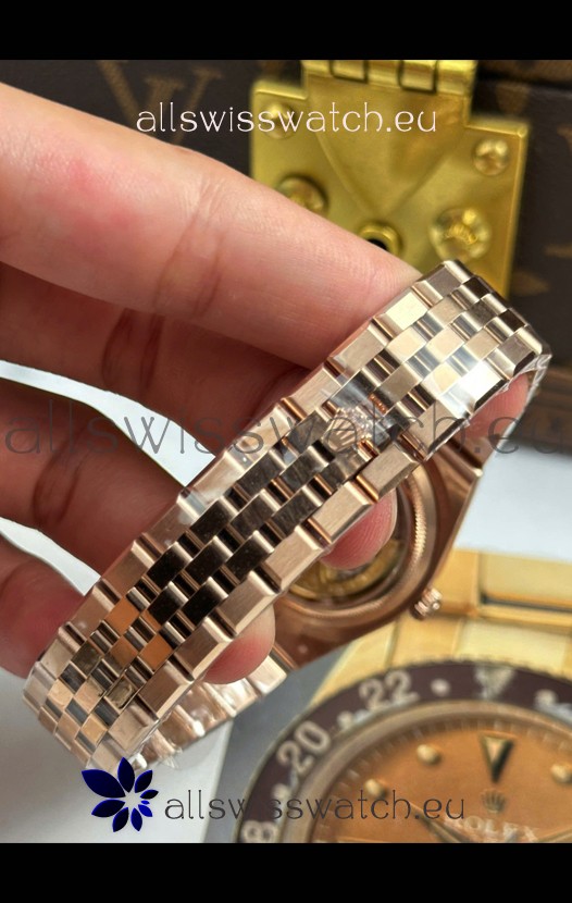 18K Rose Gold Plating on 904L Stainless Steel with Folding Clasp, End links match up Flush with the Case. - A Much Improved Datejust Strap Version