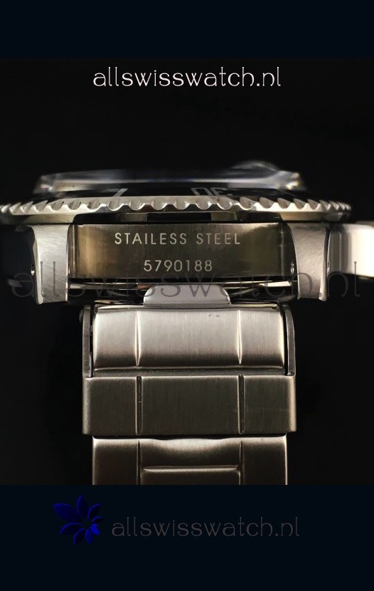 316L Stainless Steel Strap linked with Screws for easy adjustment with Folding Clasps with Divers Extention complete with Rolex Markings and Engravings as per the Original.