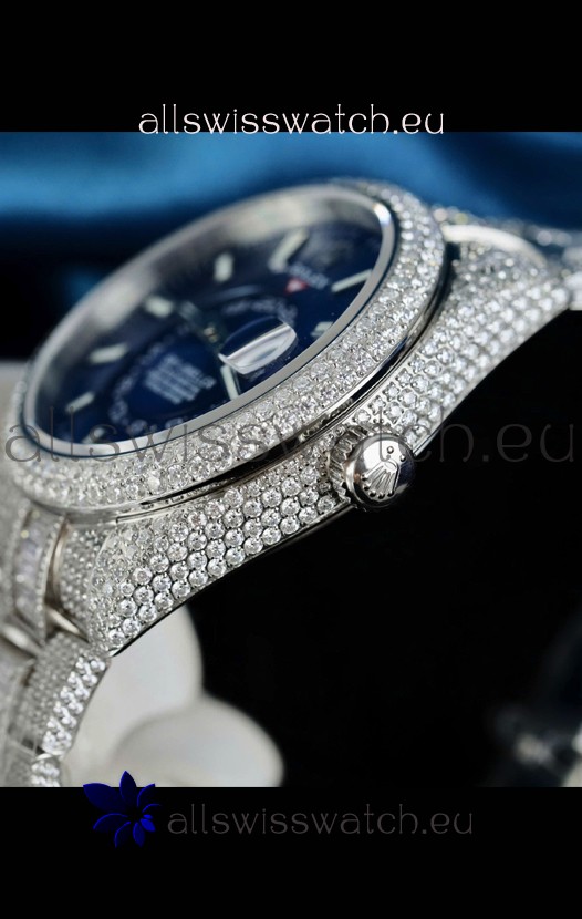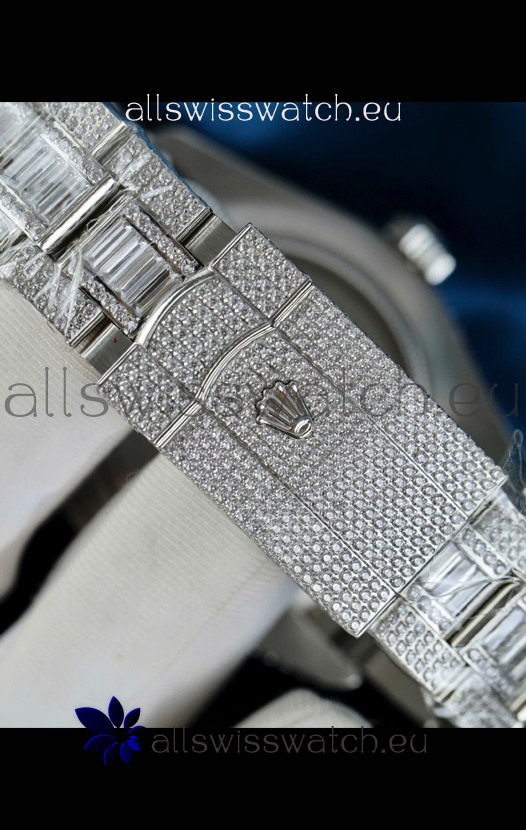 Mossanites Embedded on 904L Stainless Steel Case with Solid Case Back complete with Rolex Markings and Engravings