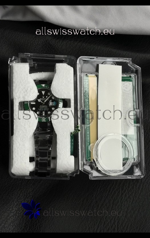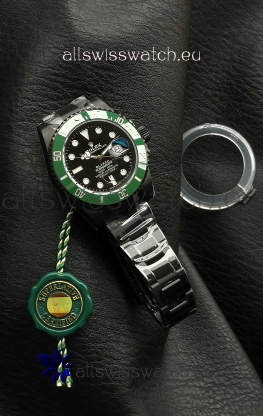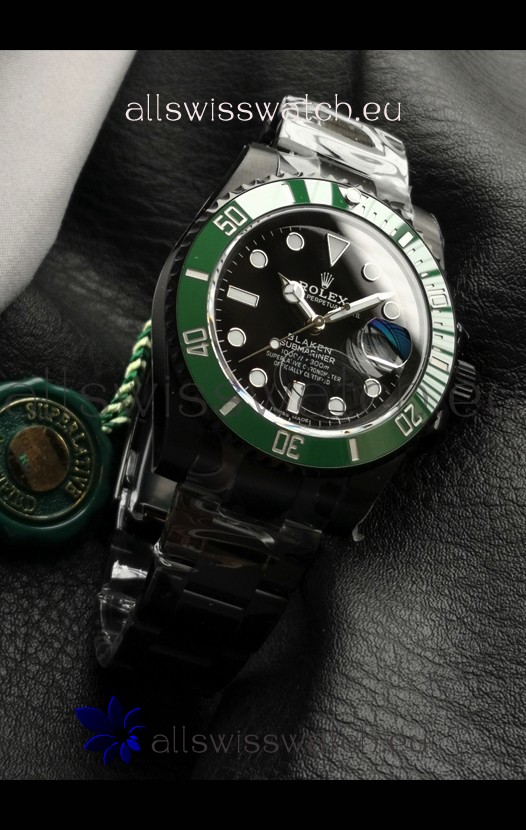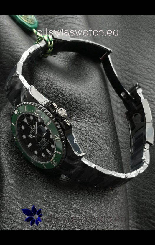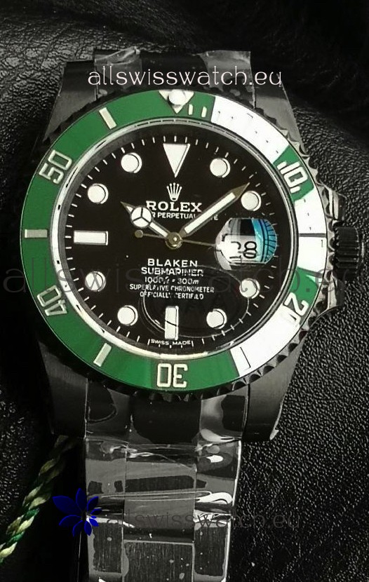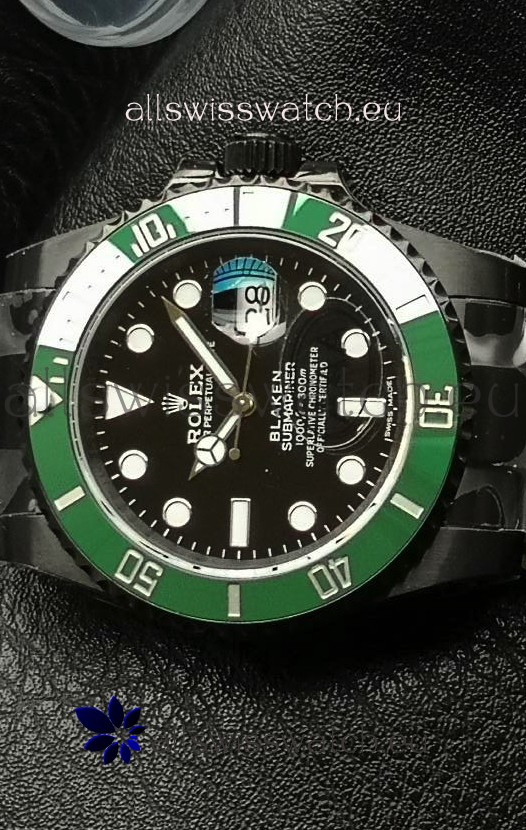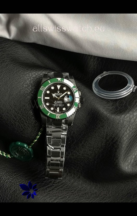 Rolex Submariner Blaken DLC Coated Swiss Replica Watch in Green Bezel