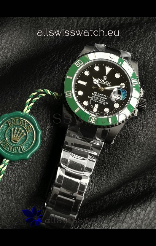 You're reviewing: Rolex Submariner Blaken DLC Coated Swiss Replica Watch in Green Bezel