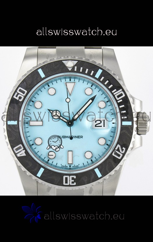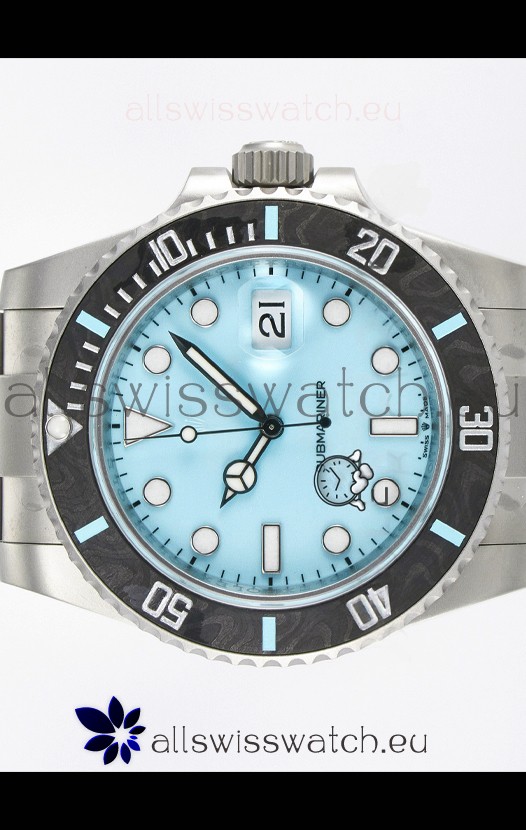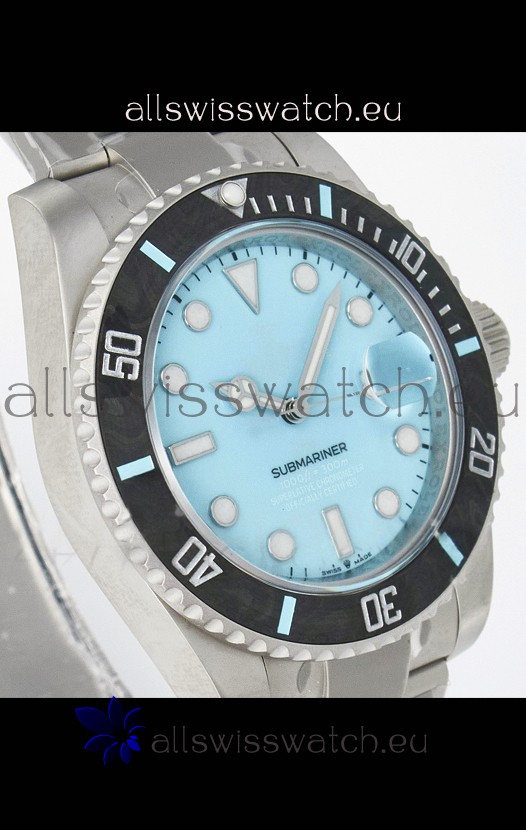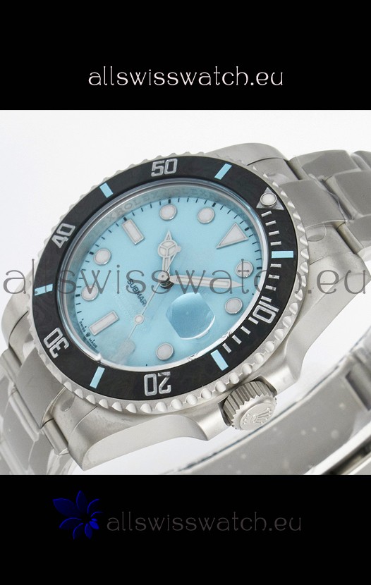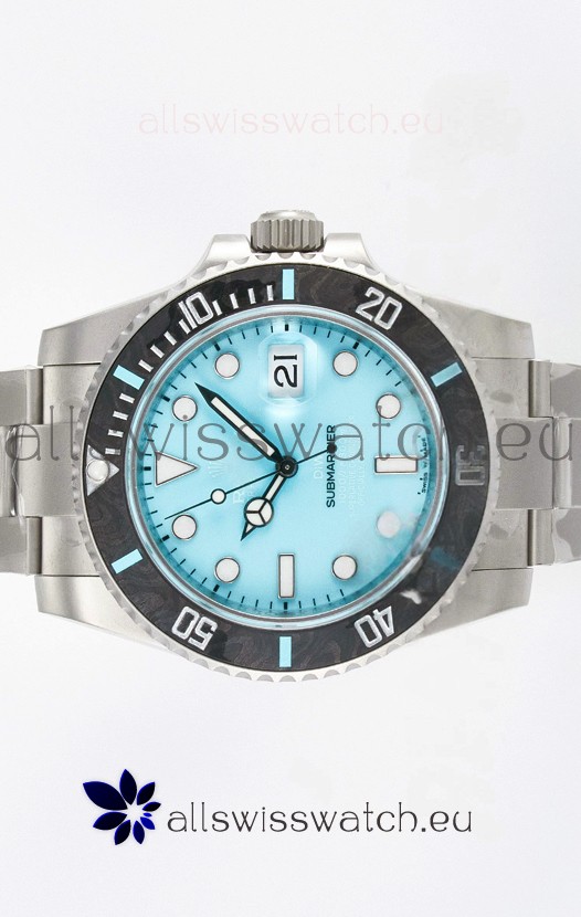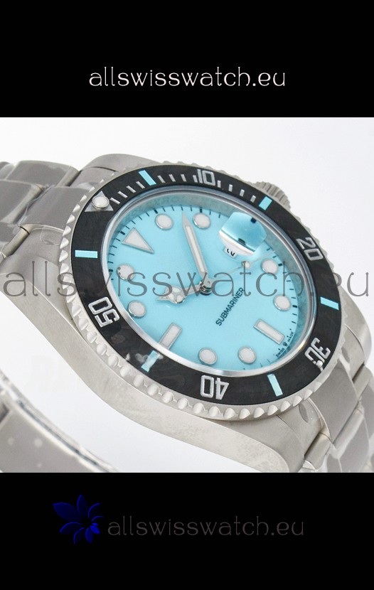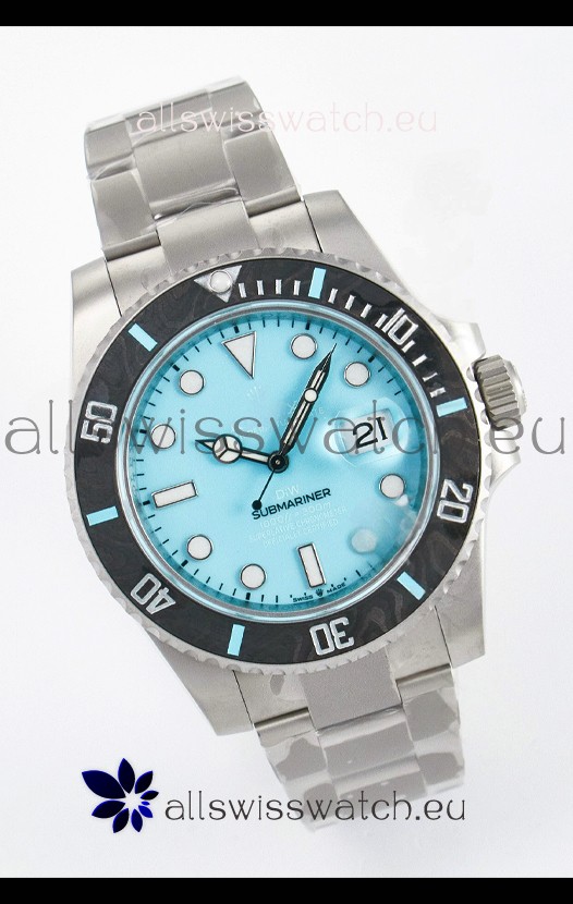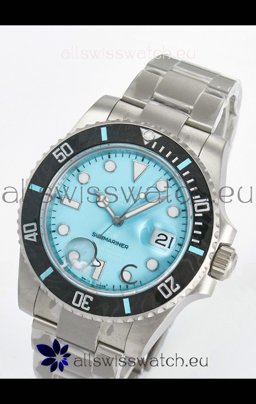 Rolex Submariner DiW Sandblasted Steel Casing Carbon Fiber Bezel Watch Tiffany Blue Dial
