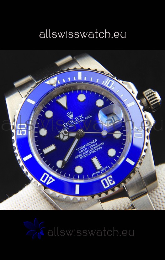 You're reviewing: Rolex Submariner Japanese Replica Watch 904L Steel - Ceramic Bezel in Blue
