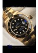 Rolex Submariner Japanese Replica Watch 904L Steel Yellow Gold - Ceramic Bezel in Black