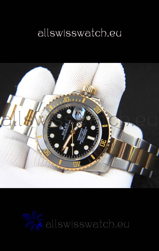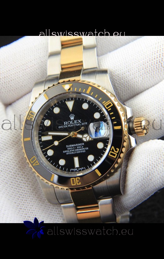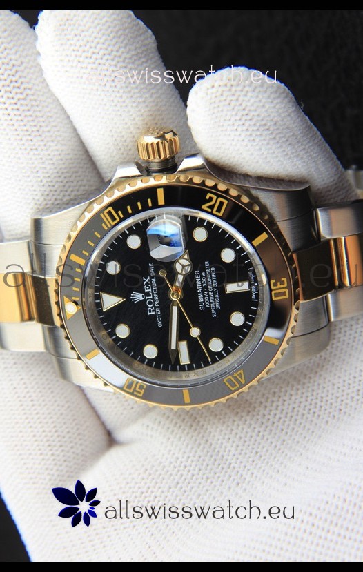 Rolex Submariner Japanese Replica Watch in 2 Tone Yellow Gold Casing Black Dial