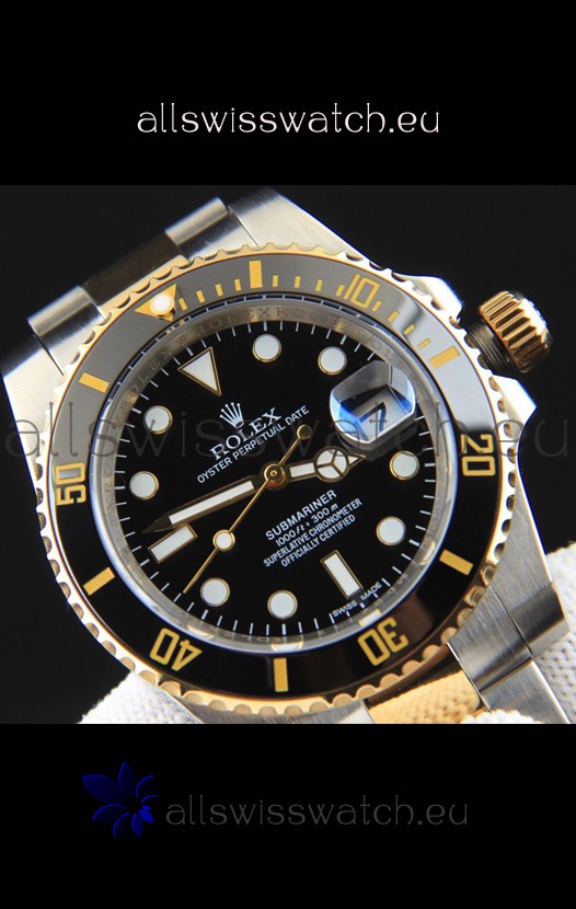 You're reviewing: Rolex Submariner Japanese Replica Watch in 2 Tone Yellow Gold Casing Black Dial