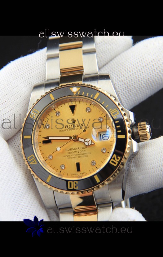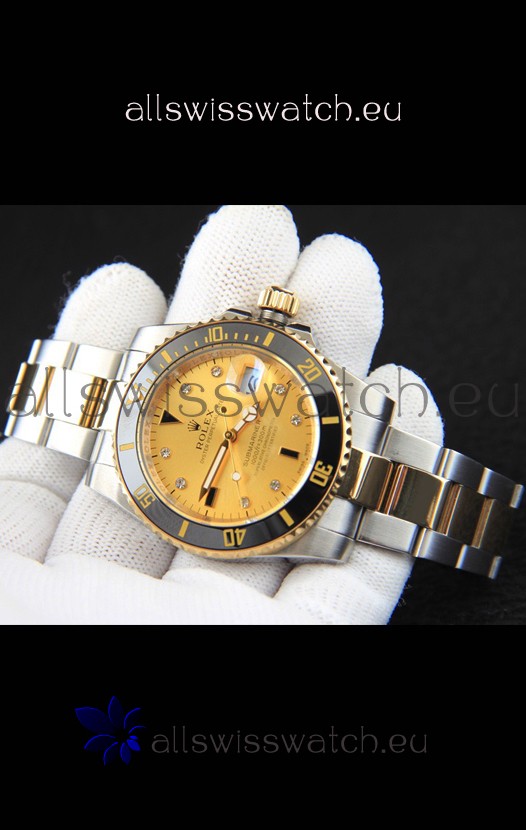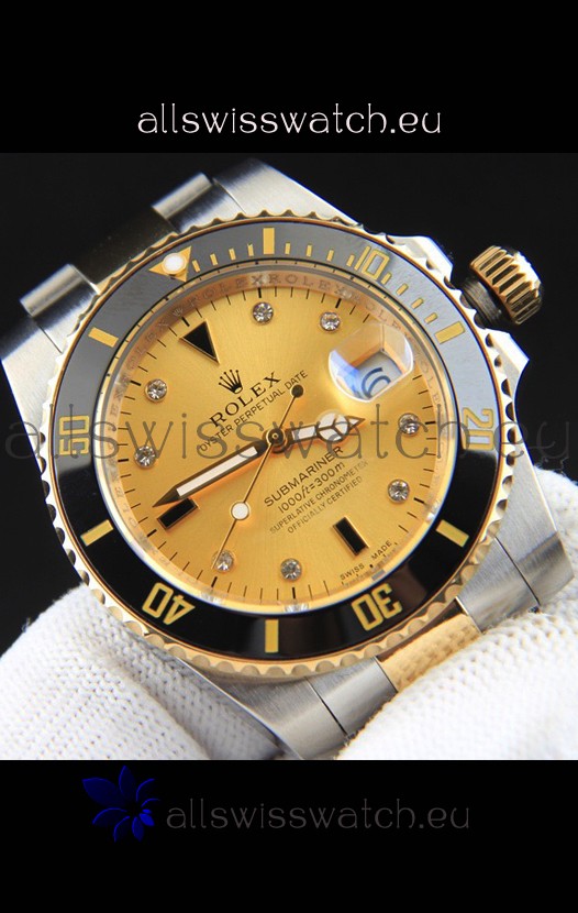 You're reviewing: Rolex Submariner Japanese Replica Watch in 2 Tone Yellow Gold Casing Gold Dial