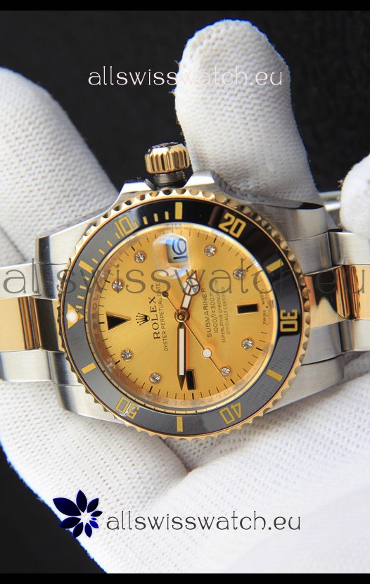 Rolex Submariner Japanese Replica Watch in 2 Tone Yellow Gold Casing Gold Dial