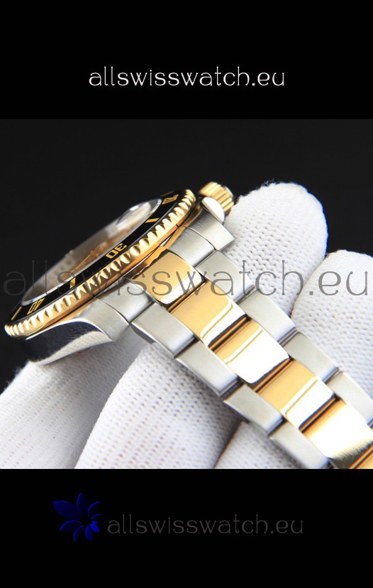 18K Two Tone Yellow Gold Plating on 904L Stainless Steel Casing, Ceramic Bezel with Solid Rear back Case
