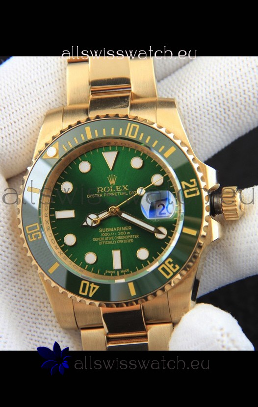 Rolex Submariner Japanese Replica Watch in Yellow Gold Casing Green Dial