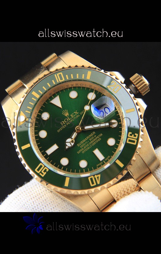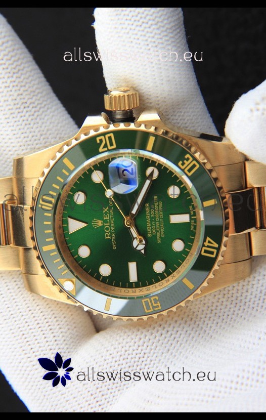 You're reviewing: Rolex Submariner Japanese Replica Watch in Yellow Gold Casing Green Dial