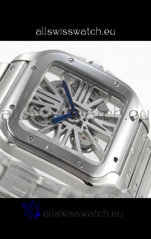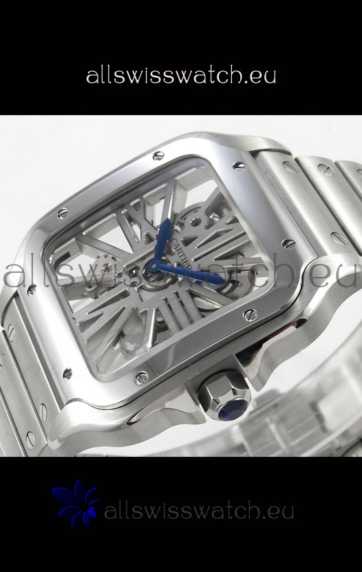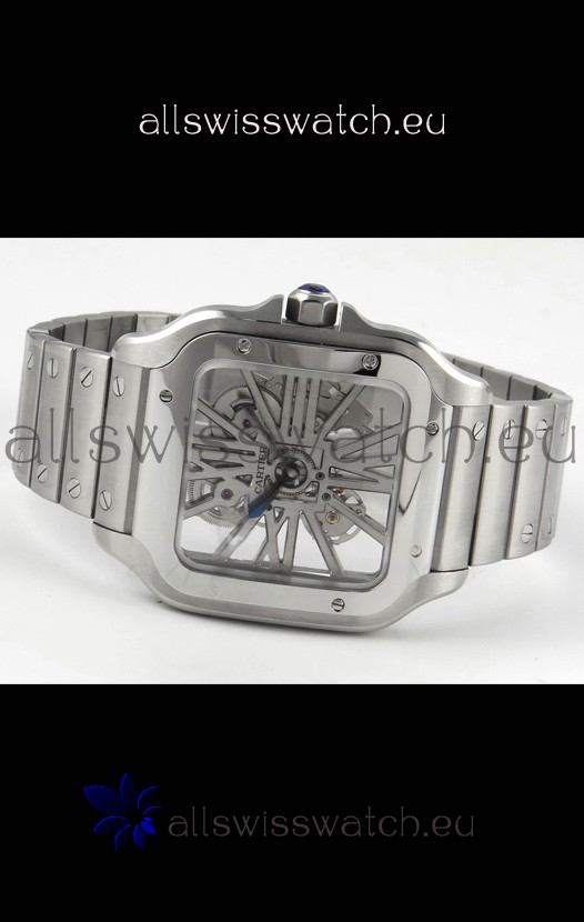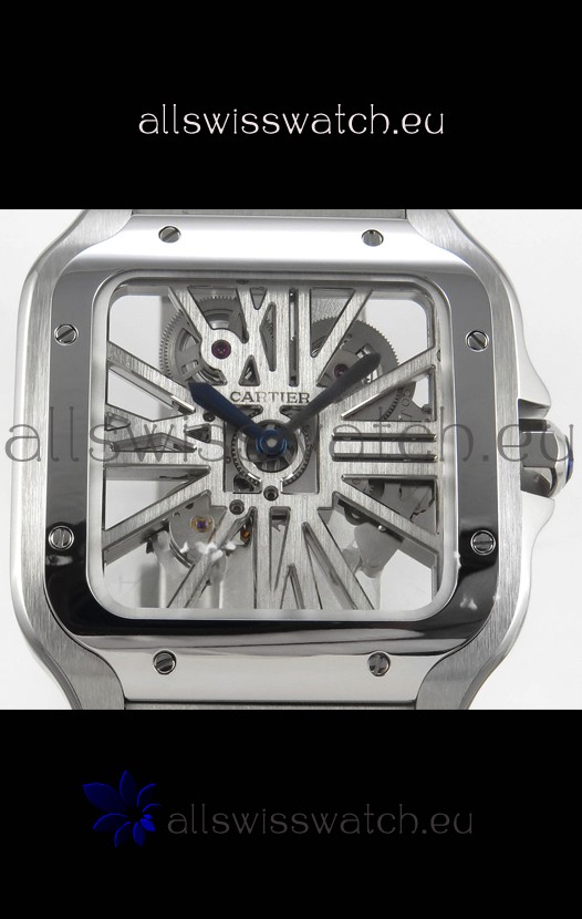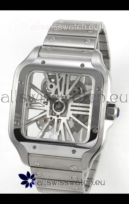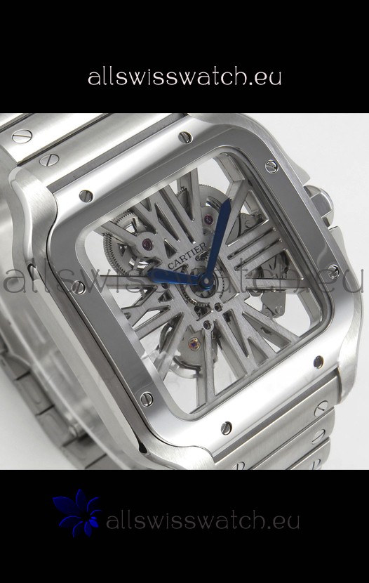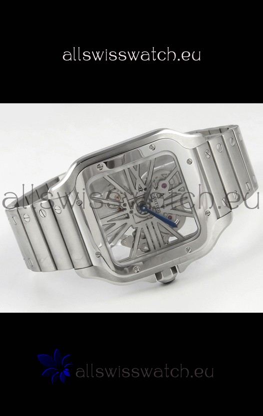 Santos De Cartier Super Clone Watch in Skeleton Dial Stainless Steel Case