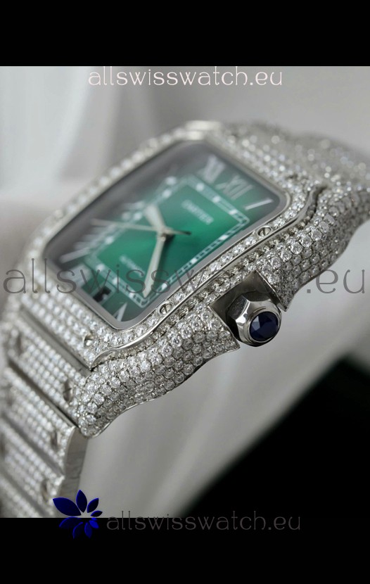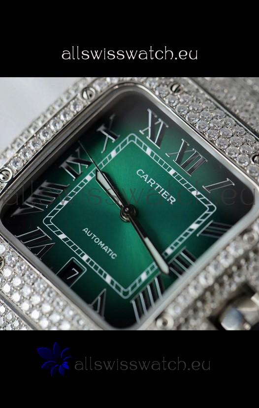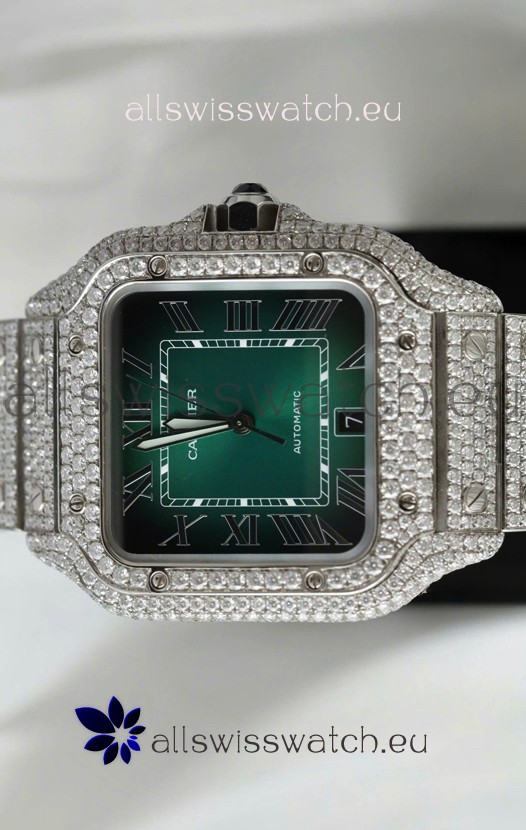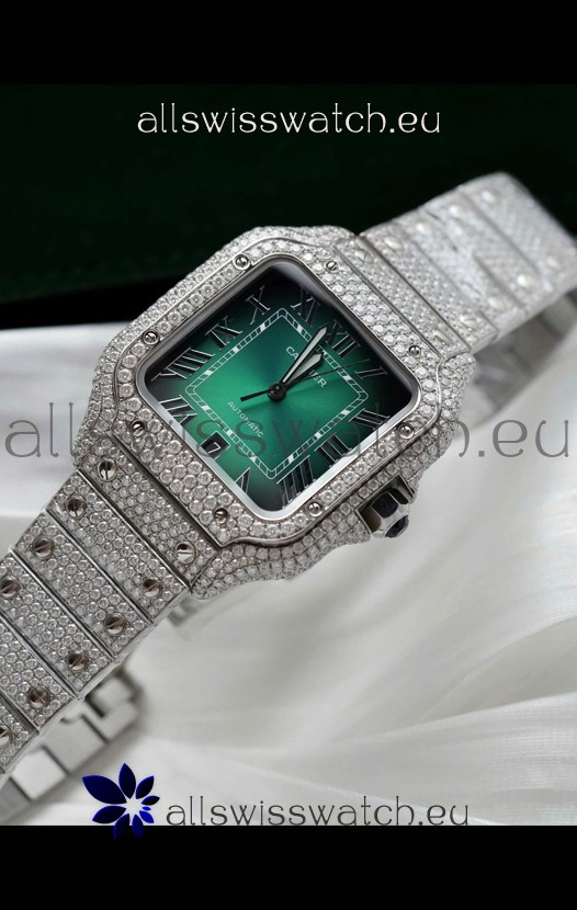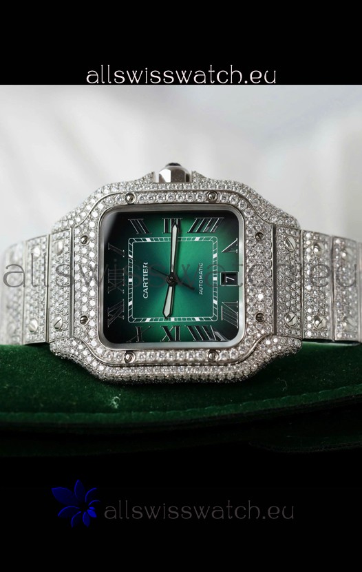 You're reviewing: Santos De Cartier Watch in Green Dial MOSSANITES Paved Edition Swiss Replica Watch