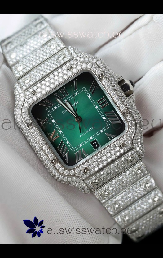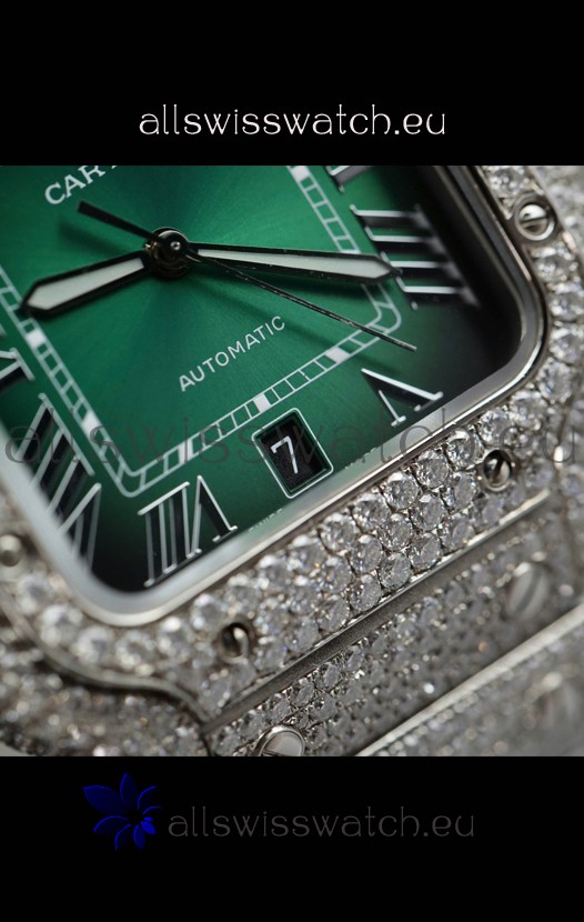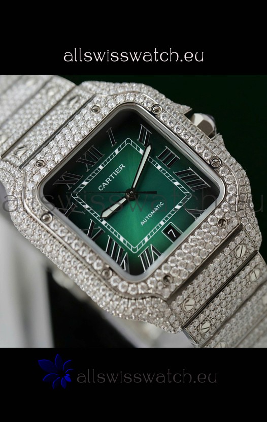 Santos De Cartier Watch in Green Dial MOSSANITES Paved Edition Swiss Replica Watch