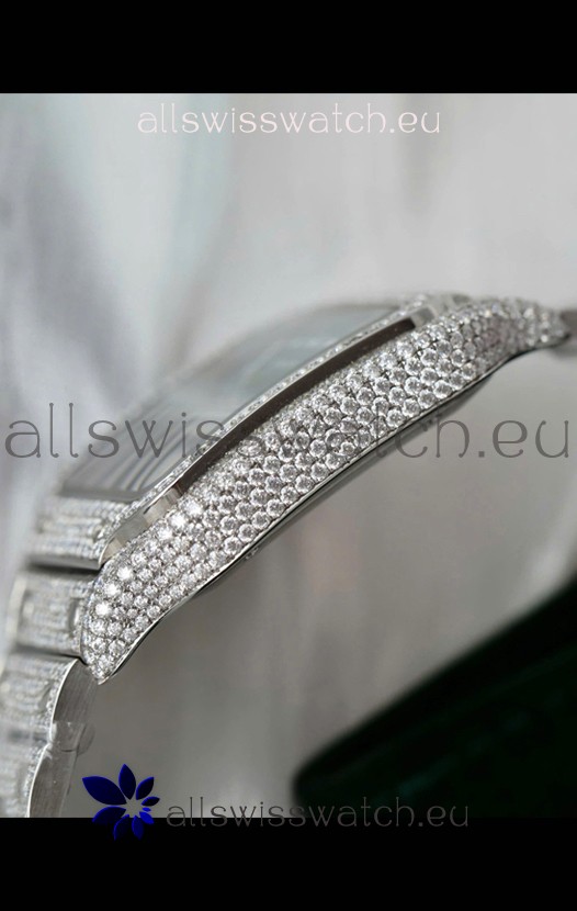 Mossanite Paved 904L Stainless Steel Strap with Cartier Deployant Buckle complete with Cartier Markings and Engravings
