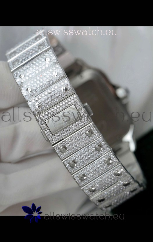 Santos De Cartier Watch in White Dial MOSSANITES Paved Edition Swiss Replica Watch
