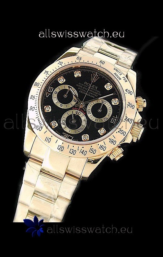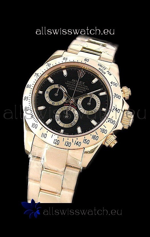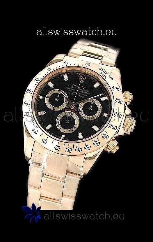 Rolex Daytona Cosmograph Swiss Replica Gold Watch in Black Dial