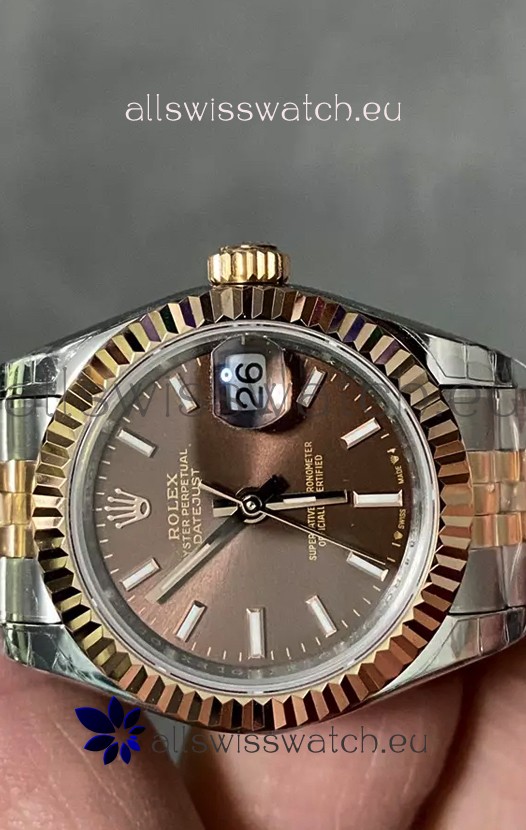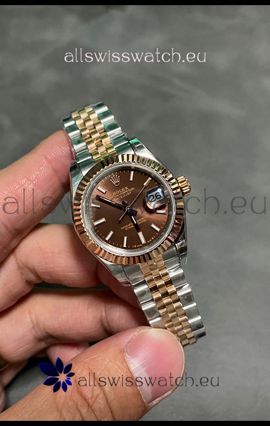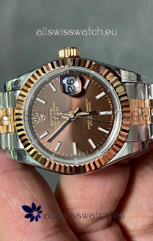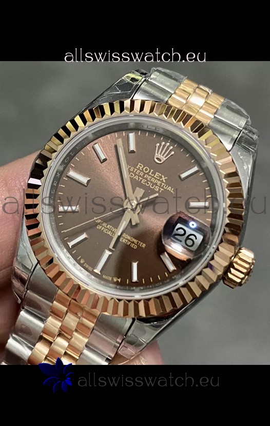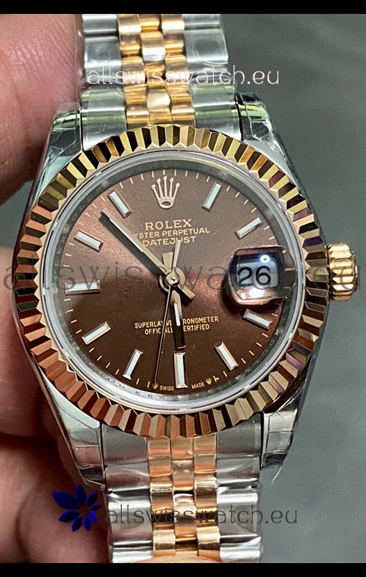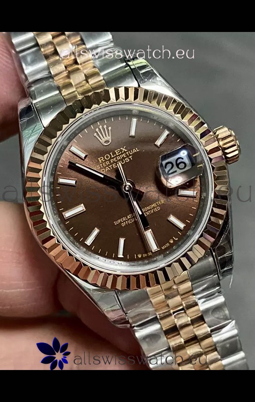 Rolex Datejust Super Clone Brown Dial 2 Tone Rose Gold Watch 28MM