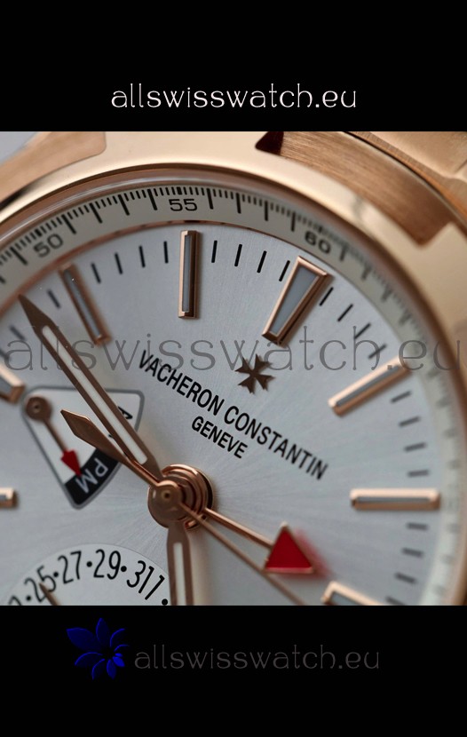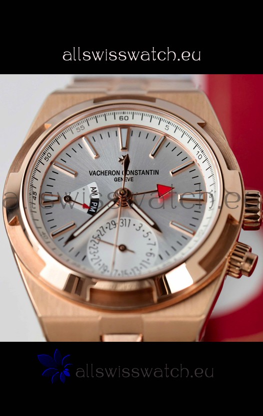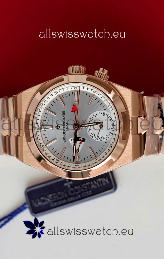 Vacheron Constantin Overseas Dual Time Rose Gold 1:1 Mirror Swiss Replica Watch in Steel Dial